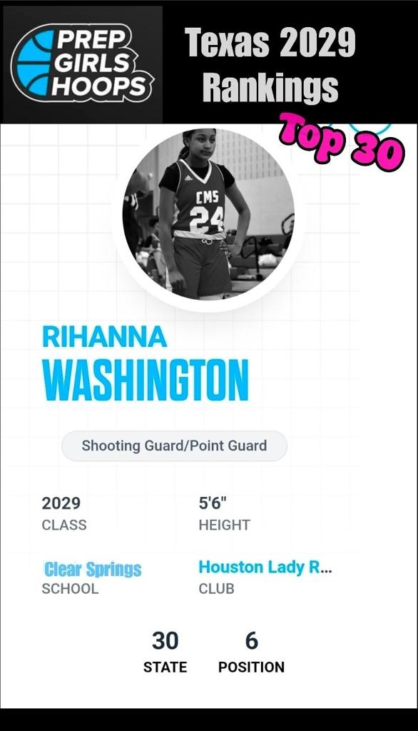 Rihanna Washington (HLRR 2029) Ranked #30 in Texas